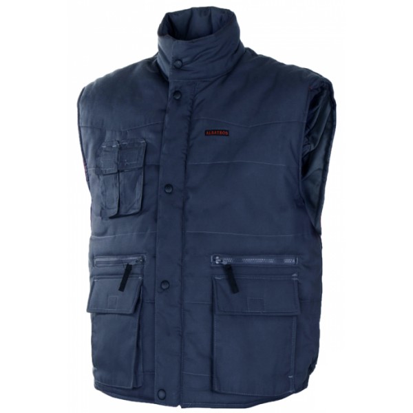 dół bezrękawnika dopasowany za pomocą gumek umieszczonych z tyłu bezrękawnika, przy szwach bocznych,