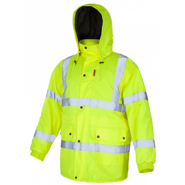 - fluoroscencyjne pasy na dole kurtki, na rękawach oraz w formie szelek zapewniające doskonałą widoczność
